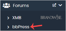 4. On the left side, locate the Forums category. Click on it and then on the bbPress link that appears.