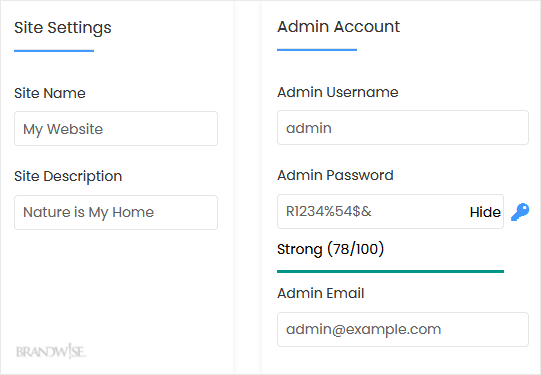 • Admin Username: Your new Chyrp username (for security reasons, do not use the administrator or the admin username).