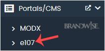 4. On the left side, locate the Portal/CMS category. Click on it and then on the e107 link that appears.