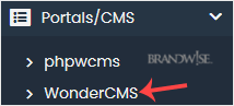 4. On the left side, locate the Portal/CMS category. Click on it and then on the WonderCMS link that appears.