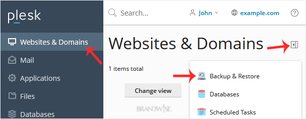 2. Go to Websites & Domains > Click on the Pull icon > Choose Backup & Restore.